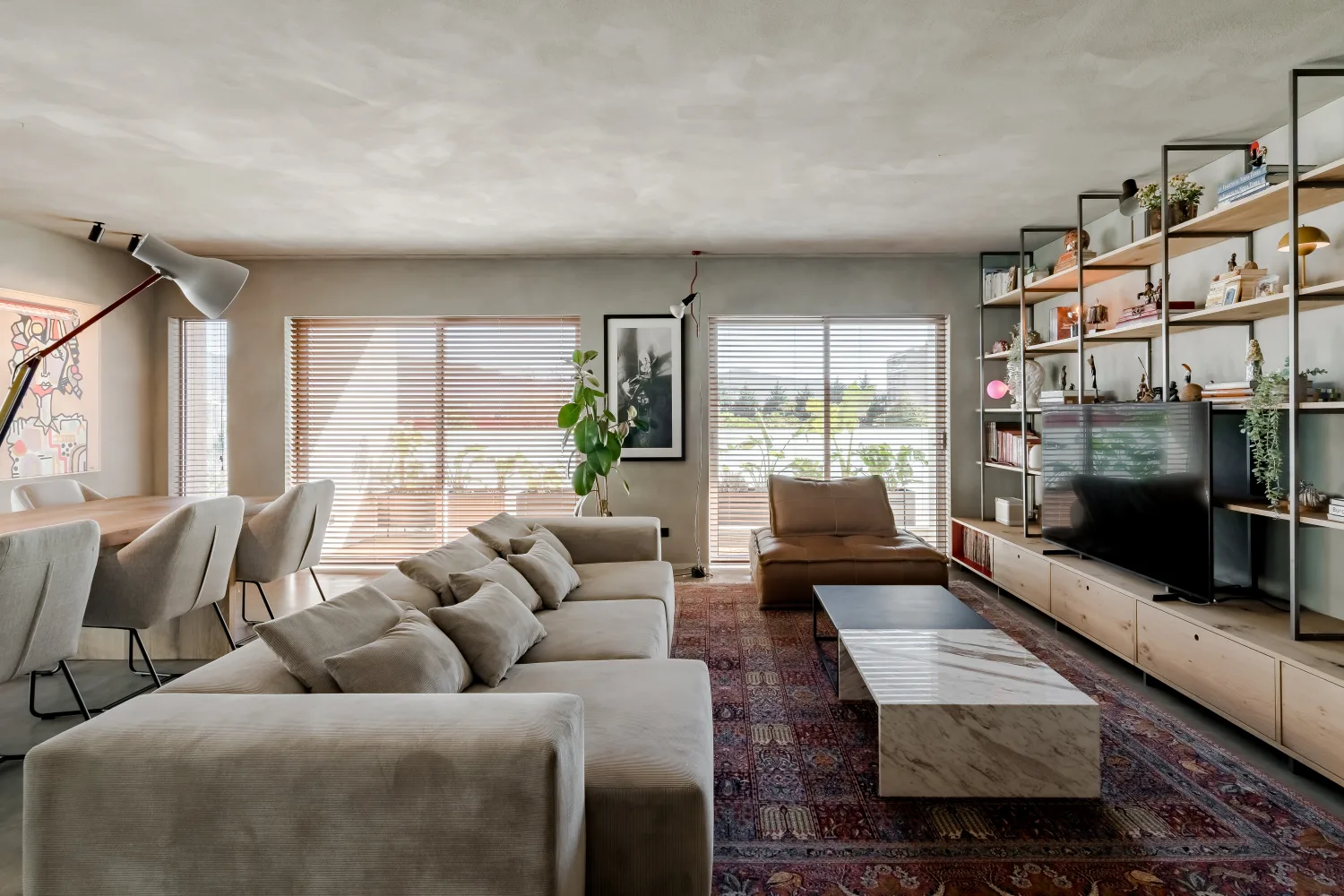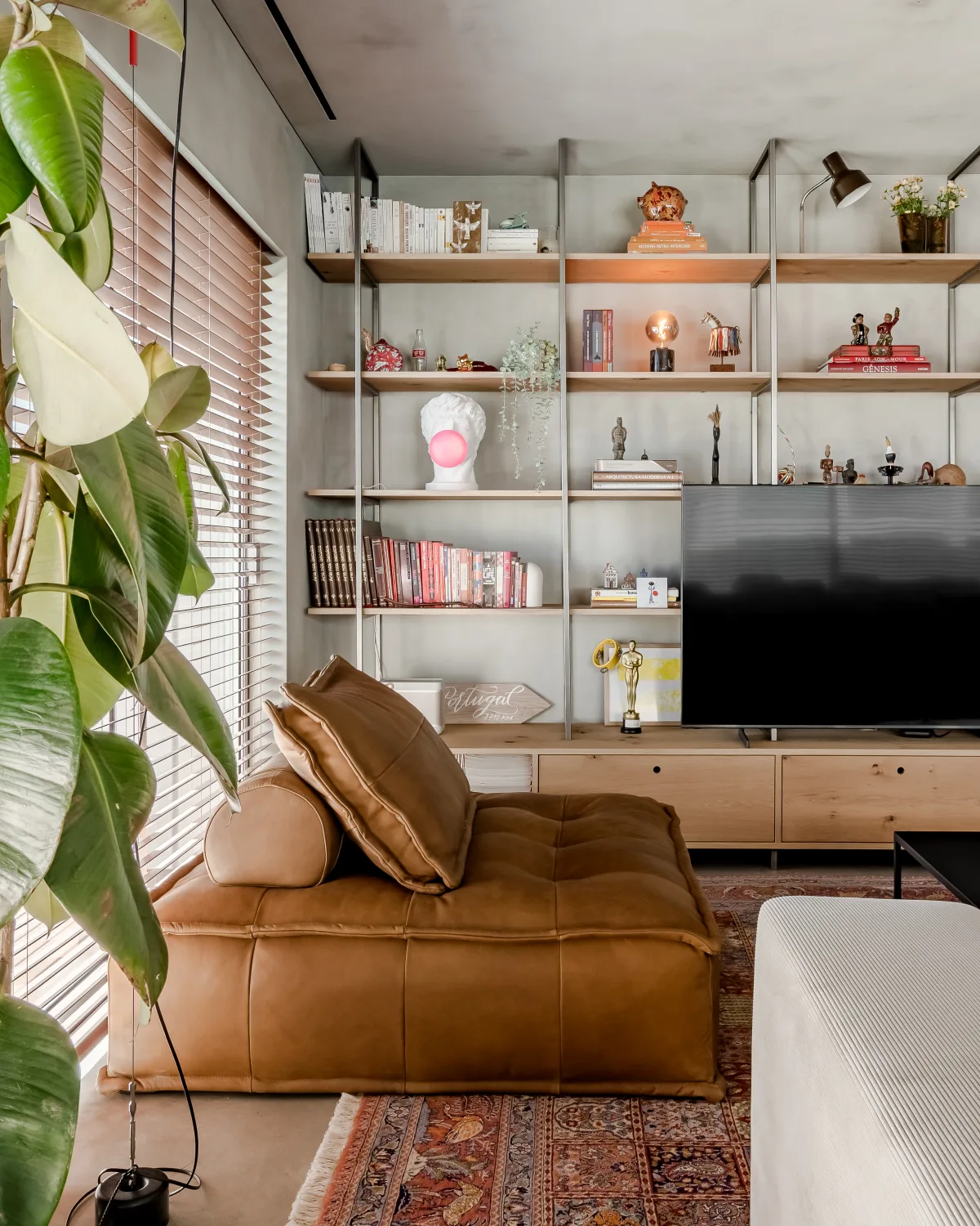 Através da utilização de uma mescla de matérias brutos, o resultado foi de encontro ao pretendido pelo cliente, conferindo personalidade e conforto ao apartamento.